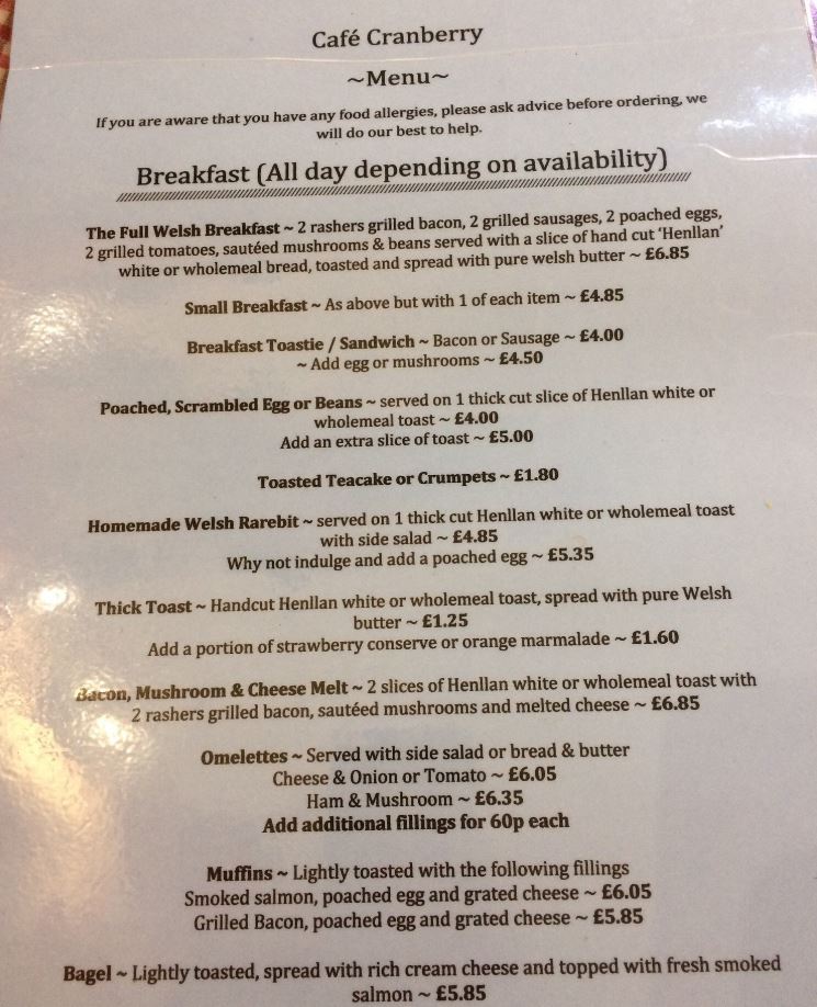 Cafe Cranberry Menu